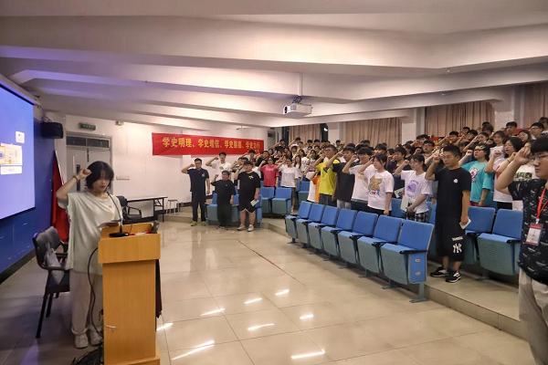 培训班在慷慨激昂的团歌中拉开序幕。培训伊始,洪紫梦同学为大家宣读了团校的各项规章制度,说明了团校的相关事宜和要求。随后,张泱为学生干部上了题为《青春之歌——走进共青团》的专题团课,带同学们认识了共青团的性质,对共青团有了更清晰、深刻的认识。此外,张泱就学校共青团思政微课、智慧团建、社会实践、挑战杯、志愿服务等工作与大家展开交流,肯定了同学们在团学工作中取得的成绩,布置了下半年团学工作任务,希望各位干部坚定理想,百折不挠,勇当新时代的领航人。
