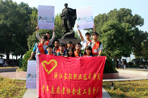 2014年10月25日,建工系学生会青协全体成员以及各部门代表共11人参加了在杭州六公园举办的“伸出援助之手,拯救白血病患儿”阳光行动。