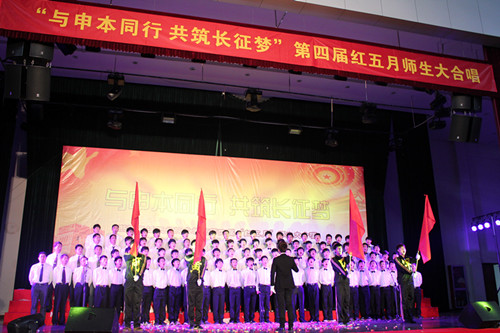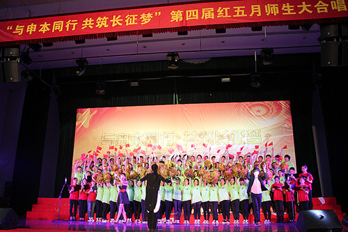 为纪念中国共产党成立九十二周年,中国共青团建团九十一周年,“五四”运动九十四周年,同时增强同学的爱国精神和集体荣誉感,弘扬“五四”精神,5月8日下午2点以“与申本同行,共筑长征梦”为主题的第四届“红五月”师生大合唱在体育馆准时开唱。