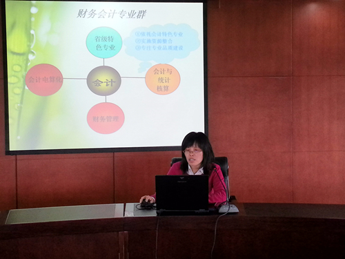 根据我院“十二五”规划的总体要求,为进一步推动专业建设工作,大力实施“专业特色化工程”,进一步凝练专业特色,5月8日下午1点开始,在行政楼三楼第一会议室开展了为期三天的“凝练专业特色,突显专业优势”为主题的专业剖析与点评活动。本次专业剖析与点评活动特邀请学院副院长杜宝山、傅建辉、王其军,教务处副处长王海慧,财务与会计学院院长高晓红,科研处处长张伟东,校企合作处处长张敬伟,学生处处长刘东,督导郭丽华,实验实训中心主任方正华参加活动并点评。会议由教务处副处长王海慧主持,各专业教研室主任和相关专业老师参加了专业剖析与点评活动。