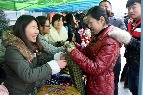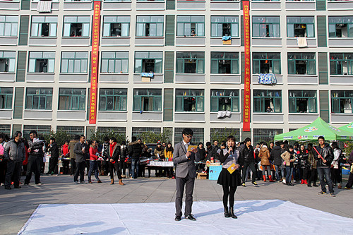 ——管理系首届跳蚤市场开业2012年12月19日,管理系首届“创新创业  回馈社会”跳蚤市场主题活动隆重开幕。在学生公寓楼10幢与12幢中间近200平米的广场上,“商铺”林立,手机配件店、服饰店、礼品店、生活用品店应有尽有,大大小小近60家。虽然是在校内,这些公司却个个“有户口”,每家公司摊位前都醒目地挂着经过“合法注册”登记的“工商执照”,执照上工整地写着公司名称、经营范围、注册号等。“老板”是管理系大一的学生,而顾客不仅有在校生和老师,还有周边学校的学生。 这些学生组成的临时公司,要完成为期5天的实际经营,从报名、登记到开业经营都全部模拟正规的市场运作程序进行实际操作,学生完全要自负盈亏。经营的学生“摊主”要经过设计经营方案、参加摊位竞标、设计布置摊位、采购销售货品、定位以及宣传广告等各种环节。