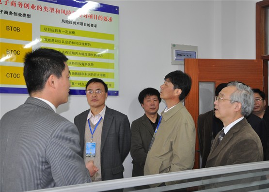 当专家组一行来到我院大学生创业园时,组长杨应崧教授与创业学生就创业过程中的具体事项和感兴趣的话题进行了亲切交谈。专家组还参观了我院“异彩纷呈”大学生作品展,专家组副组长陈丽能教授对学生书画作品进行了专业点评。
