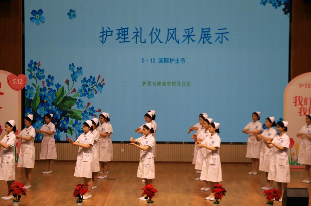 表彰典礼对2021—2022学年各奖项获得者和2023年庆祝护士节系列活动300余名获奖者进行表彰。祖淑梅、张泱、应佳盈等为获奖学生代表颁奖。此外,护理与健康学院学生还通过护士礼仪风采展示及服装秀、手语操《感恩的心》、情景剧《生死时速》、歌曲《如愿》、舞蹈《清平乐》等精彩节目向大家展示了护理与健康学院学子健康向上的精神面貌,获得了全场的喝彩和好评。