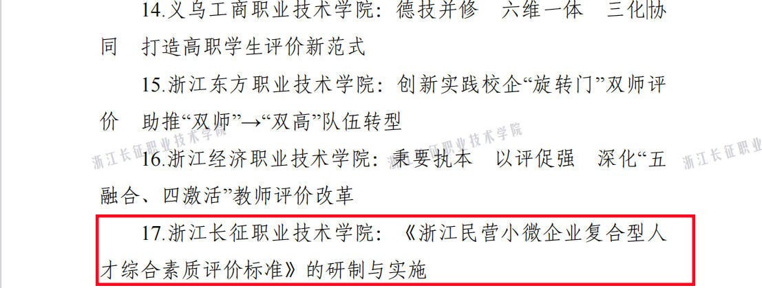 本次评选旨在及时总结、宣传、推广教育评价改革典型经验,持续营造深化教育评价改革的良好氛围,深入凝练办学特色亮点,努力打造具有浙江辨识度、全国影响力的教育评价改革品牌。经各地各校申报、专家评选,共有41个案例入选,其中高职专科院校5个。
