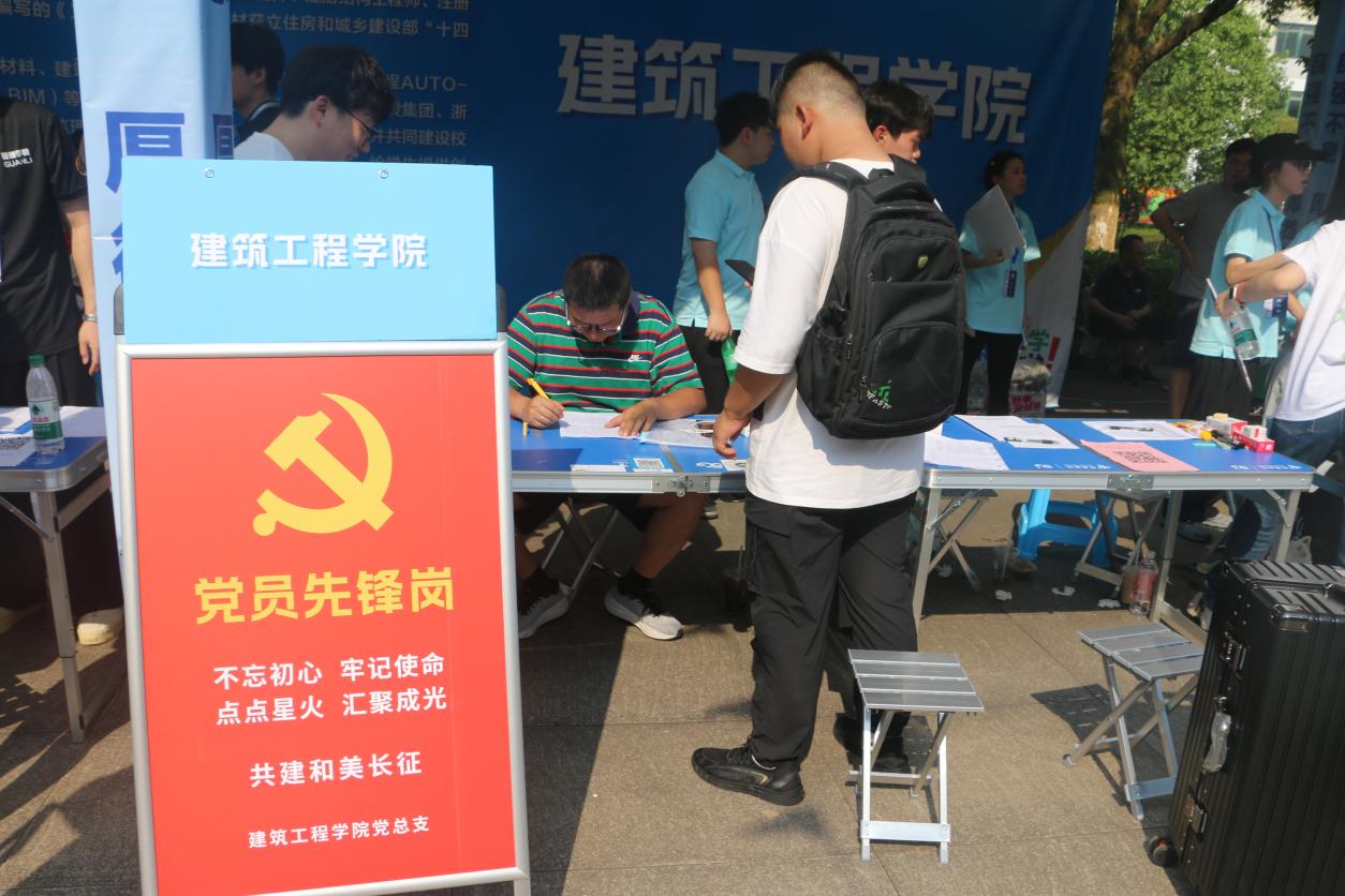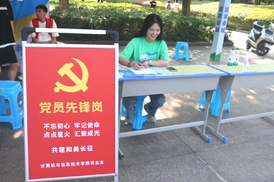 在报到区域设立9个党员先锋岗党员教师