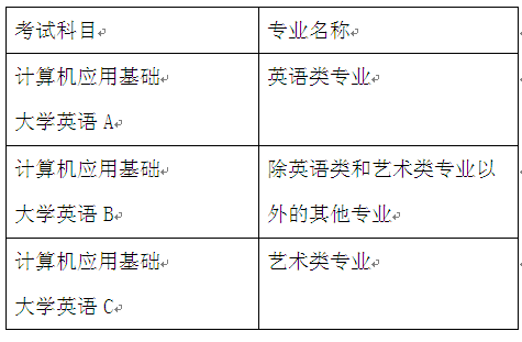 (1)《计算机应用基础》、《大学英语》(A、B、C)四门统考课程采用混编考场方式。具体报考时间如下: