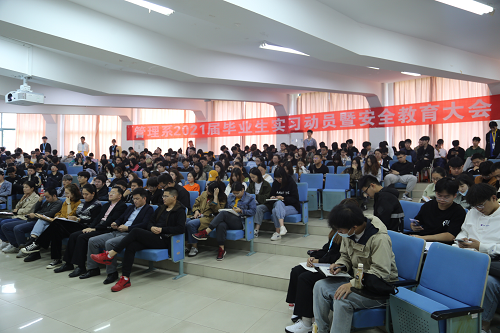 2020年10月20日下午,管理系在第二教学楼2117教室举行了“2021届毕业生实习动员大会”。出席大会的有管理系主任汪亚明,党总支书记李晓梅,各教研室主任、全体教师、辅导员和2018级全体实习生。学工办副主任刘帅主持会议。