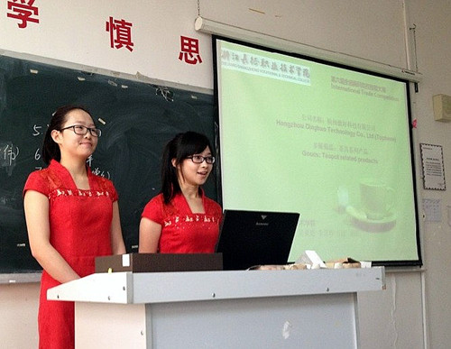 2013年3月27日下午两点整,由我院贸易系、商务系、语言系联合组织的浙江长征职业技术学院第一届国际贸易商品展技能大赛在1号教学楼1315教室成功举办。本次大赛共八支队伍参加,分别来自贸易系、语言系和商务系;评委组由三个系的专业教师组成,由语言系杨成青教师担任评审组组长。