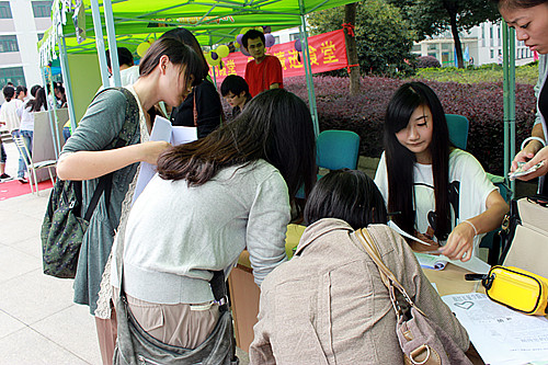 院秘书处、学生会、社团联合会将近22部门及42个学生社团在图书馆前举行纳新活动。图书馆前横幅飘扬,海报招展。此次纳新活动分为报名、面试、笔试、复试四个阶段,学院“一体两翼”全体学生干部都认真负责对待。面试时他们仔细听取了新生的自我介绍,并提出适宜的问题来考察新生处理相关问题的能力。面对台下众多的“主考官”,大一新生从容自信、对答如流。纳新活动旨在为各部门、社联社团注入新鲜血液,吸纳有特长,有志之士的加入,也给新同学提供了一个展示自我的平台。