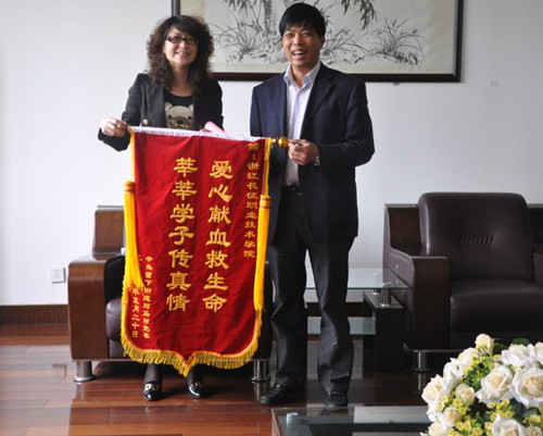 自5月16日发出“为石马村村民郑冬囡无偿献血的倡议书”以来,得到了我院学生的积极响应,5月18日下午近五十名学生在团委的组织下赴武林门献血点进行献血,共计11700CC血浆。病人家属表示,长征学子的这次善举,及时稳定了病人的病情,为后期的救治争取了时间。石马村党委给我校送来了一面“爱心献血救生命 莘莘学子传真情”锦旗,病人家属还送上一封感谢信,并对我院无偿献血志愿者做了极高的评价。
