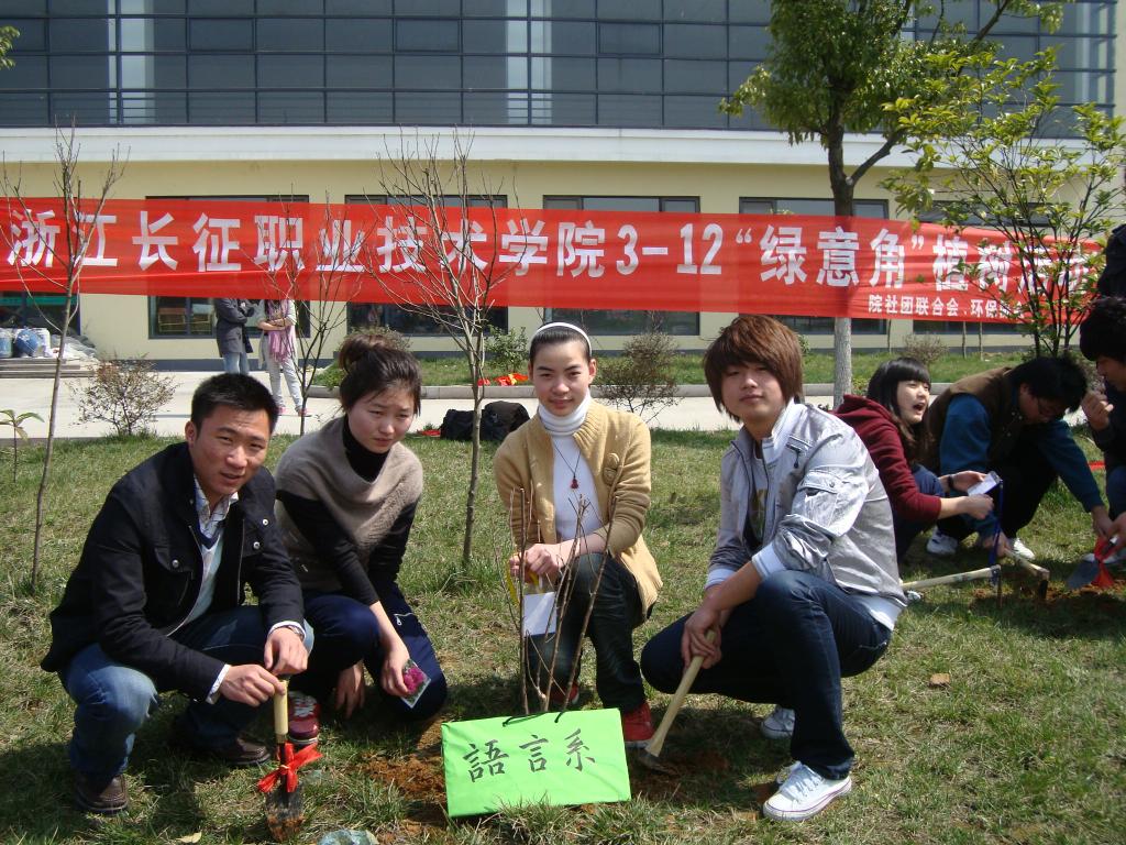 为了积极响应“建设节能低碳,绿色和谐家园”的号召, 3月12日中午,由我院大学生社团联合会举办“浙江长征职业技术学院3.12绿意角植树节”活动在体育馆西侧草坪进行。学生处处长富荣辉老师、团委书记陶元老师、团委副书记戴丽娟老师、团委南君孚老师和学院“一体两翼”学生干部、各系学生代表参加了此次活动。