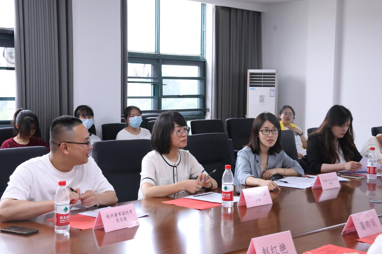 婴幼儿托育服务与管理专业教研室主任及学前教育专业教师对专业情况进行了介绍。双方针对学院学前教育专业人才培养方案、各学期见习安排以及校、园(企)协同育人合作方式进行深入探讨。小和山幼儿园园长提出婴幼儿教师良好师德师风对孩子成长影响的重要性,建议多增设师德师风课程;西湖区百家园园长认为对于学龄前儿童来说,回应性关系非常重要,建议增设师幼互动类沟通课程,大家一致认为无论是0-3岁幼儿还是3-6岁幼儿的教学,都应关注婴幼儿照护方面的内容,真正做到托幼一体化,学院需重视专业学生在上岗前争取考取保育证、育婴师证等照护类证书。