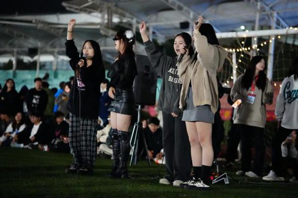 虽秋风渐凉,但演出现场气氛火热,激昂的青春在夜空下唱响。观众们或坐或立,为这场青春音乐盛宴欢呼呐喊。
