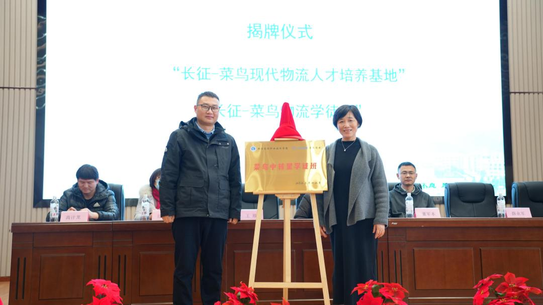随后,吴少俊与董军本为“长征-菜鸟现代物流人才培养基地”揭牌,王珍与薛永军为“长征-菜鸟物流学徒班”揭牌。菜鸟物流公司代表为学徒班学员颁发了录用证书。