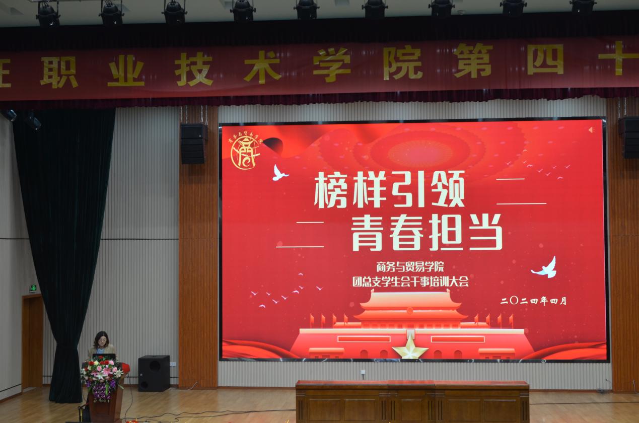 为提高学院学生干部的思想政治素质和团学工作能力,规范学生会管理,加强学生干部队伍建设,近日,商务与贸易学院团总支学生会在学校第一报告厅举行学生干部培训会。学院党总支书记过芹芹,副书记高计龙,学工办主任、团总支书记严雪娟,学工办副主任章云及全体辅导员,近400位学生干部参加了培训会。会议由严雪娟主持。