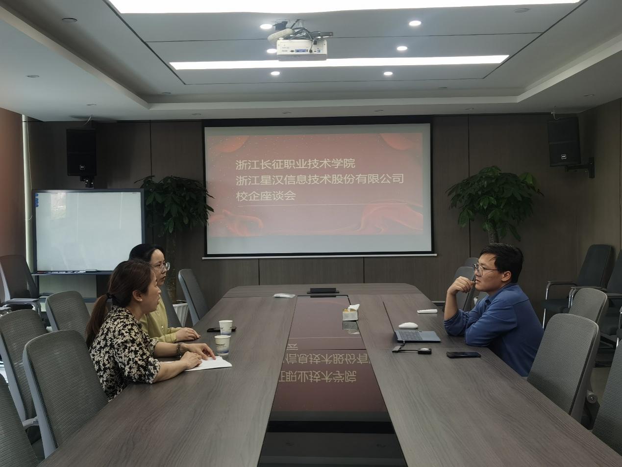 为深化产教融合,促进人才培养与市场需求精准对接,4月23日,管理学院张雅淋、胡述芬两位老师前往浙江星汉信息技术股份有限公司(以下简称:“星汉股份”)开展访企拓岗专项活动。星汉股份负责人周楠钧热情接待。