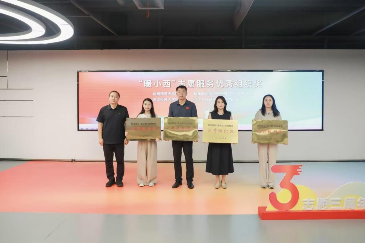 近日,杭州西站“暖小西”志愿服务三周年纪念活动温情启幕。活动以“志愿三周年 ‘西’心同温暖”为主题,全面回顾志愿服务成果,致敬长期坚守的志愿力量,我校青年志愿者凭借三年来专业、扎实的服务表现,荣获“‘暖小西’志愿服务优秀组织奖”。校团委副书记慕莎、学校志愿者代表金振宁受邀参会。