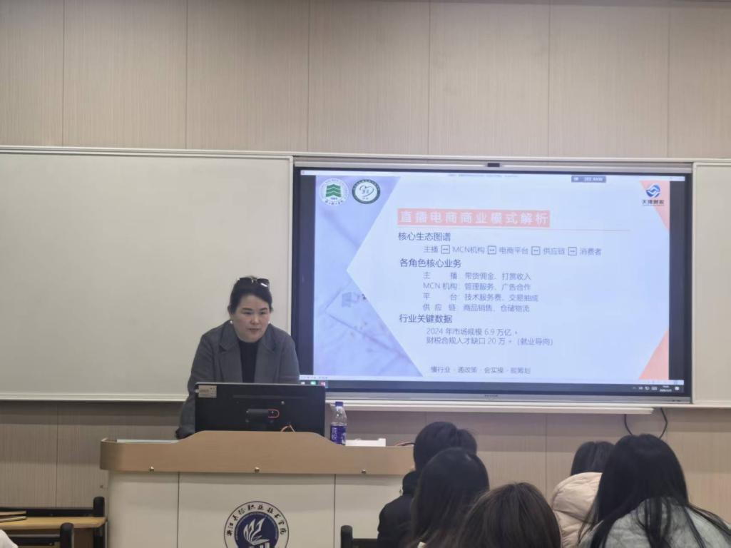 近日,财务与会计学院第三期“财税精英班”举办“直播电商财税合规与规划”专题讲座。本次讲座特邀杭州天隆财务咨询有限公司总经理、国际注册会计师胡晓庆老师主讲,旨在帮助师生紧跟行业监管趋势,提升财税实务能力与职业竞争力。“财税精英班”全体学员到场聆听学习。