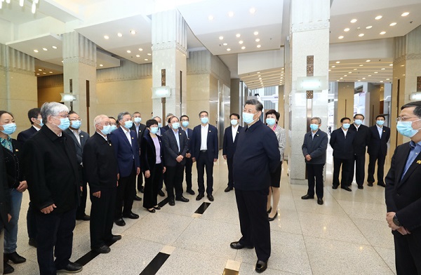 清华大学主楼二层,展示了学校近年来重点教学科研成果。习近平听取了关于增强自主创新能力、助力世界主要科学中心和创新高地建设、提高人文社会学科教育研究水平等情况介绍,对清华大学取得的成绩给予充分肯定。习近平指出,要坚持中国特色社会主义教育发展道路,充分发挥科研优势,增强学科设置的针对性,加强基础研究,加大自主创新力度,并从我国改革发展实践中提出新观点、构建新理论,努力构建中国特色、中国风格、中国气派的学科体系、学术体系、话语体系。