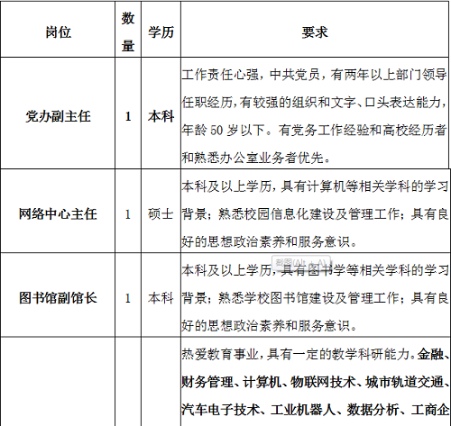 浙江长征职业技术学院2020年9月招聘岗位及要求